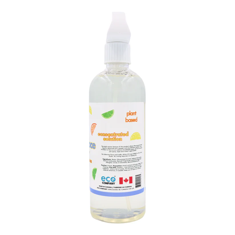 An eco-friendly multi/all purpose surface cleaner that is citrus-scented. This cleaner is tough on grease and leaves no residue.