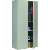 A Fileworks® storage cabinet is an economical solution to your storage needs. Provides storage for stationery, tools, clothing and other valuables. Features adjustable levellers and two hinged doors with lock. 1 fixed shelf and 3 adjustable shelves. 36”W x 18”D x 72”H. Grey.