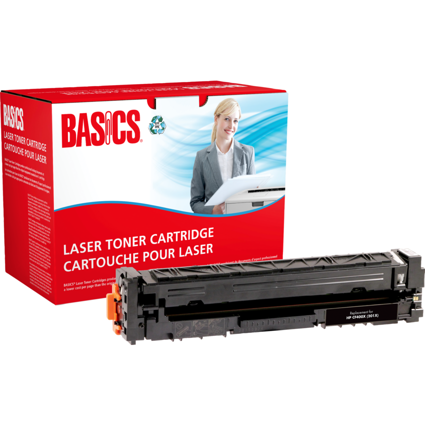 Basics® Brand cartridges are manufactured at North American ISO 9001:2000 registered facilities using returned, original equipment cartridges. These cartridges are designed, engineered and manufactured to meet OEM performance while ensuring top quality and consistent output. OEM# 201X. Basics®. HP Color LaserJet Pro M252DW, M277DW. Contains a minimum of 90% post-consumer recycled material. Yields 2,800 pages. High yield. Black.
