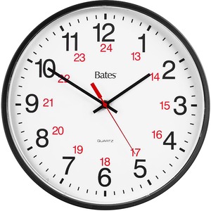 This Commercial Quartz 12/24 Hour Computer Clock operates with quartz accuracy to within a minute over a year's time. Features inner ring with computer/military time, high-impact black case, white face, quality lens and step-movement second hand. Clock runs on one AA battery, sold separately.