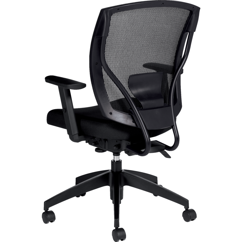 Multi-tilter mechanism, classic air-flow mesh back design with a fully upholstered seat, infinite position tilt lock and tilt tension adjustment. Independent back & seat angle adjustment. Forward seat angle adjustment. Lumbar support with height adjustment. Height-adjustable arms with durable self-skinned urethane armcaps. Dual wheel carpet casters. Pneumatic seat height adjustment. Optional sliding seat depth adjustment.