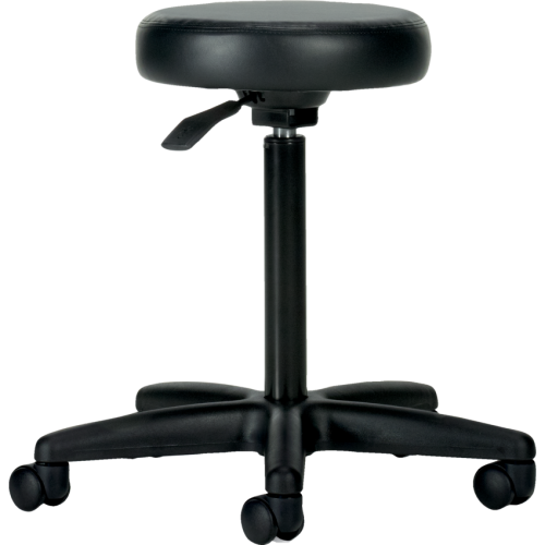 The comfortable solution for filing and other tasks that take you around the office. 13-1/2" diameter seat. 10" pneumatic seat height adjustment. Seat range from 22-1/2" to 32-1/2". 22" diameter five-legged injection molded base. Dual-wheel carpet casters. 14 lbs. 13-1/2"W x 13-1/2"D x 27-1/2"H. Vinyl. Black.