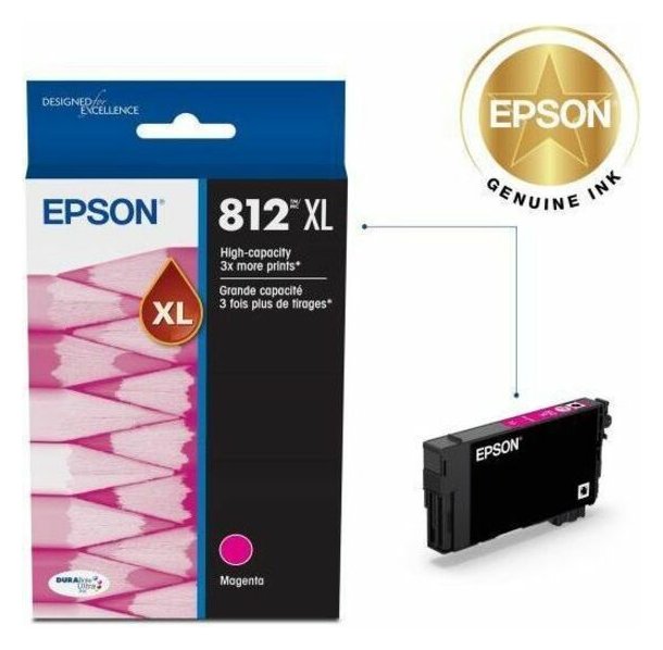 The T812 High Capacity Ink Cartridge with Sensormatic from Epson is compatible with the WorkForce Pro WF-7820 and WorkForce Pro WF-7840 Printers. This cartridge is rated to yield approximately 1100 pages and features DURABrite Ultra instant-dry pigment ink for professional-quality prints.