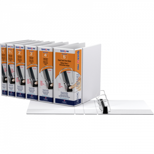 Pin-Lock® gap free locking D-ring makes it easy to open, close, and load paper, while keeping documents secure. Customize the front and spine with a single sheet of paper. A second 8-1/2"x11" sheet can customize the entire front cover. Double hinged front. See quickfitbinders.com to create and print free customizable inserts. Features ink-transfer resistant overlay and interior front and back cover pockets. Polypropylene. 1" capacity. White.