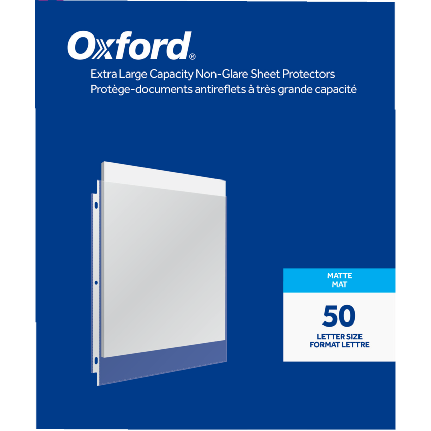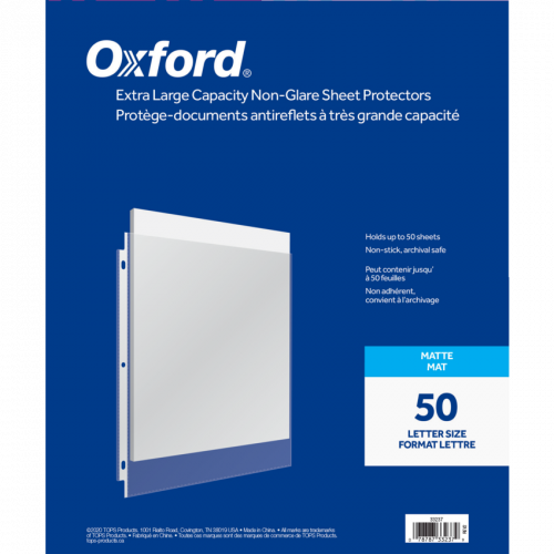 Top-loading sheet protectors let gravity do the work—just drop your sheets neatly into place; with reinforced hole punch strip to resist tears. Contains a minimum of 60% post-consumer recycled content. Matte finish. 3 mil. Holds 50 sheets. Letter size. 50/box.