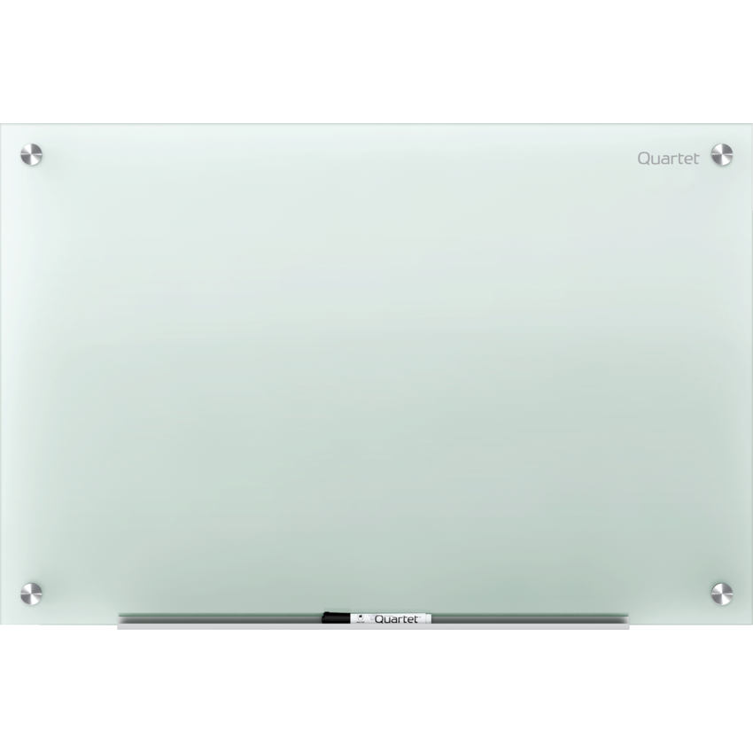 Tempered glass will not stain, ghost, scratch or dent. Ideal for heavy use in spaces with moderate traffic. Frameless board design blends seamlessly into any environment Includes Quartet® Dry-Erase Marker and mounting hardware. Limited 15-year warranty. 48" x 72". Frosted.
