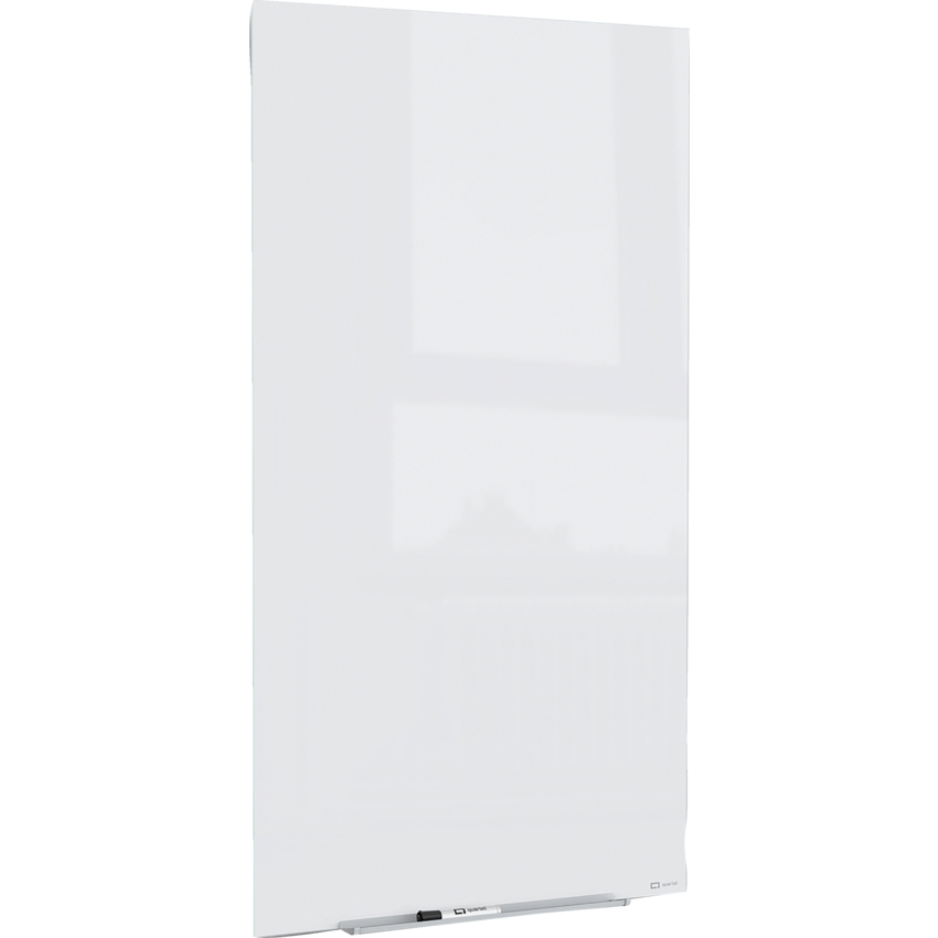 Elevate your space with a glass board that appears to float on the wall. Express ideas again and again on a board that won’t stain or ghost. Maximize usable space with hidden mounting hardware Includes accessory tray, one marker and two high-power magnets. Limited 20-year warranty. 85" x 48".