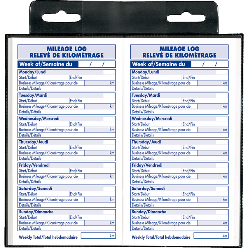 Complete book to keep track of all your auto related expenses. Protective vinyl cover. Contains a minimum of 30% post-consumer recycled content. Weekly mileage log, space for maintenance and repairs by month. Yearly summary, travel diary and telephone and address section. 108 pages. 6-3/8" x 3-1/2". Bilingual.