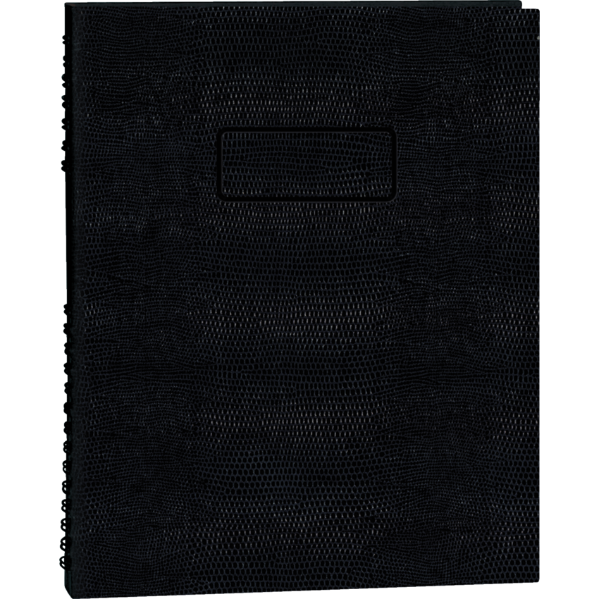Planner page on left with ruled page on right side. Refillable with MiracleBind™ sheets. Contains a minimum of 50% post-consumer recycled material. FSC® Certified. Hard, lizard-like cover. Twin wire bound. 7:00 a.m. to 11:00 p.m. in 30-minute intervals. 200 pages. Self-adhesive tabs, index sheet, complete utility section and storage pocket. 10-3/4" x 8-1/2". Bilingual. Black.