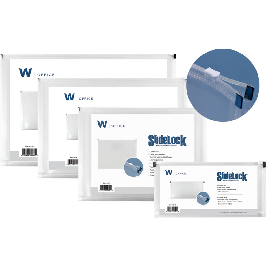 Poly envelope features a slidelock zipper closure to secure contents while providing easy access