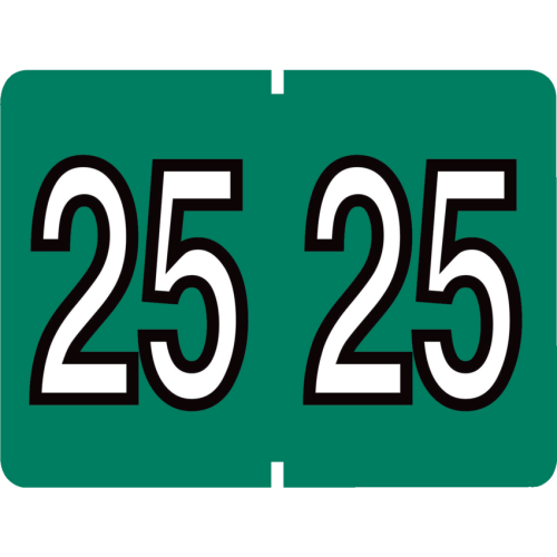 Compatible with DataFile® L8800 series labels. White numbers on colored labels. 2025. 1-1/4" x 15/16". Dark Green. 500 labels/box.