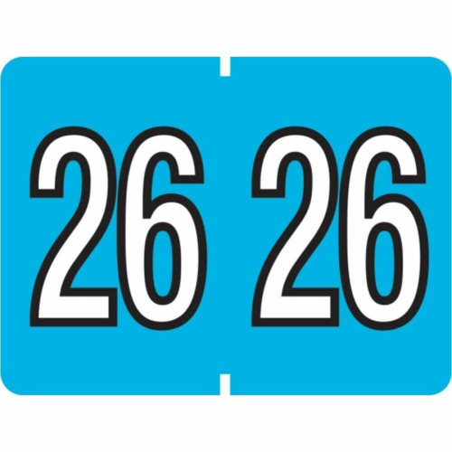 Compatible with DataFile® L8800 series labels. White numbers on colored labels. 2026. 1-1/4" x 15/16". Light Blue. 500 labels/box.