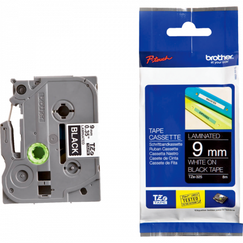 For P-Touch® GL100*, 200, 300, 310, 320, 330, 520, 530, 1000*, 1090*, 1180*, 1200*, 1230PC*, 1250*, 1290*, 1500PC*, 1700AD, 1750, 1800, 1830, 1880, 1900, 1950, 2030, 2100, 2200, 2300, 2430PC, 2500PC, 2600, 2700, 2730. *Not compatible with 18 mm (3/4") or. 9 mm (3/8”). White on Black.