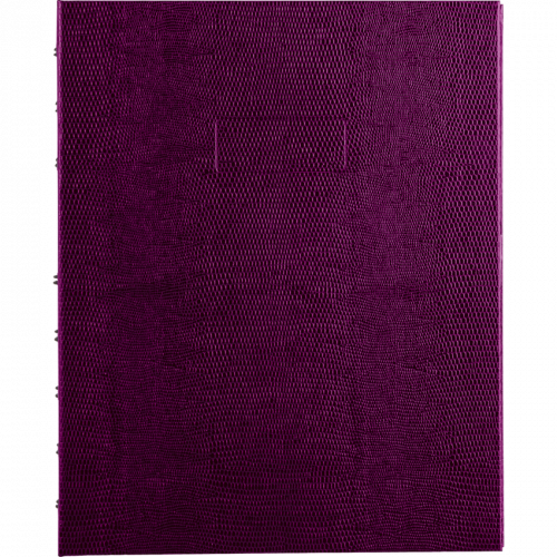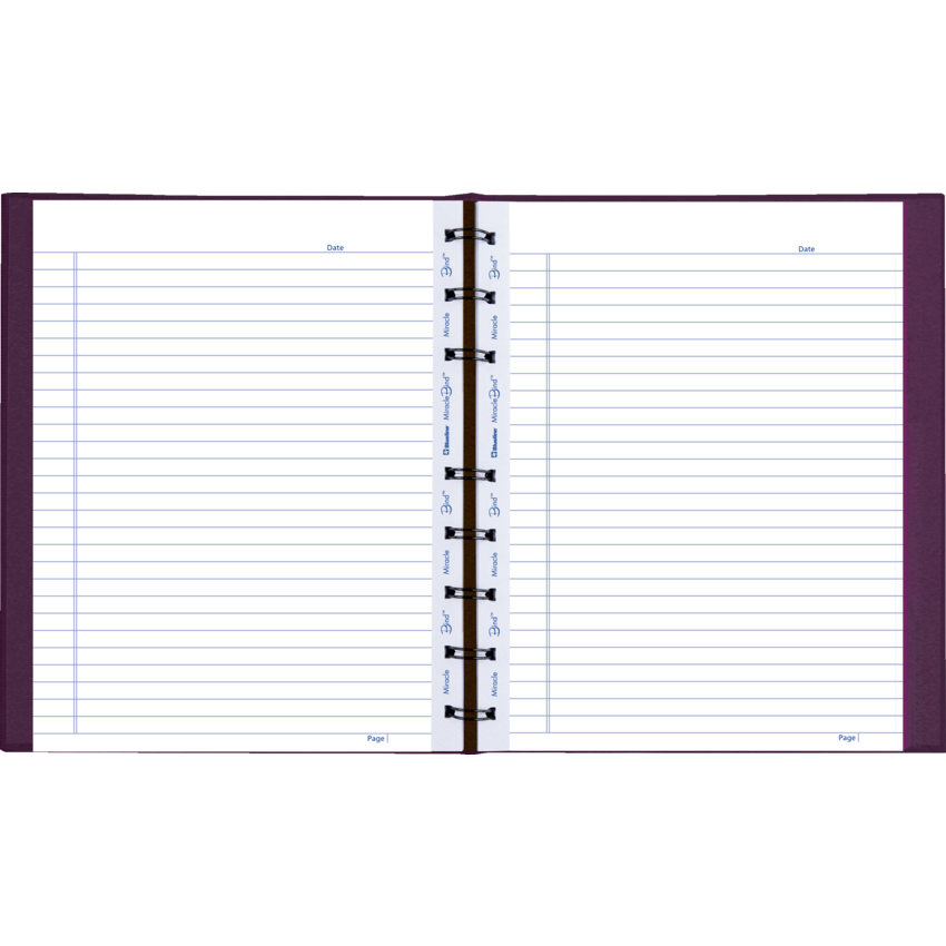 Contains a minimum of 50% post-consumer recycled material. FSC® Certified. Twin wire bound. Hard, lizard-like cover. Ruled pages with margin. Features removable micro-perforated pages, self-adhesive tabs and index sheet. 150 pages. 9-1/4" x 7-1/4". Includes bonus MiracleBind™ quad pages and storage pocket. Grape.