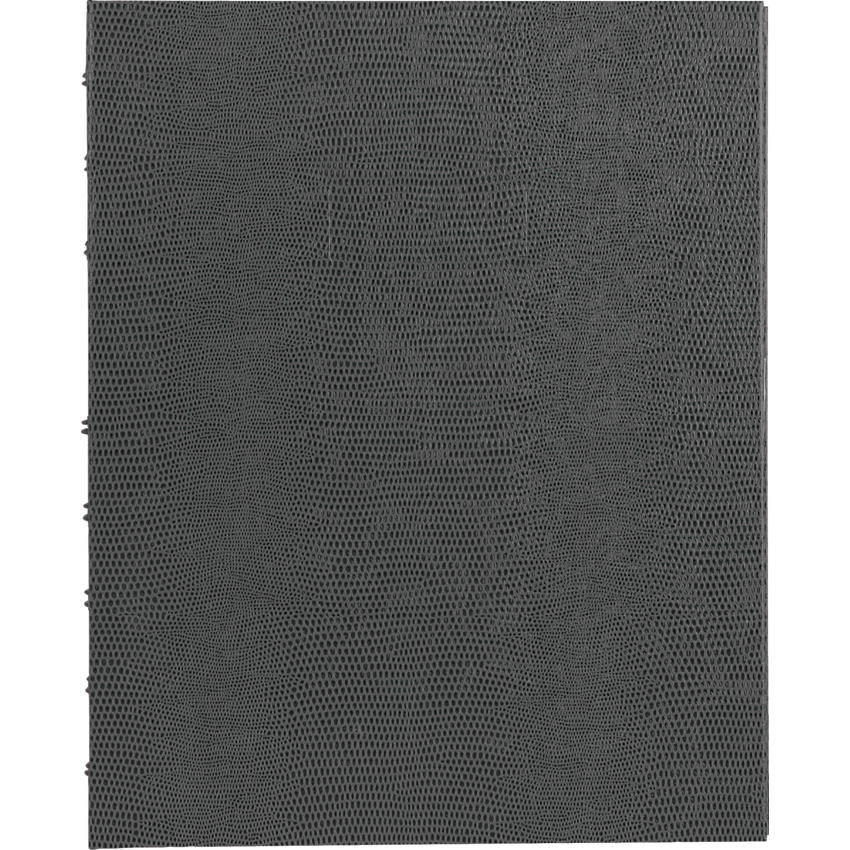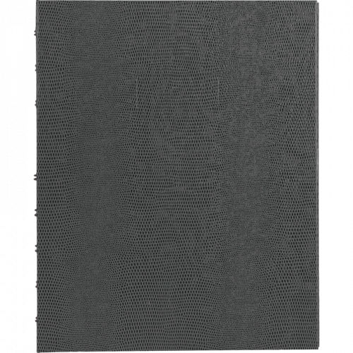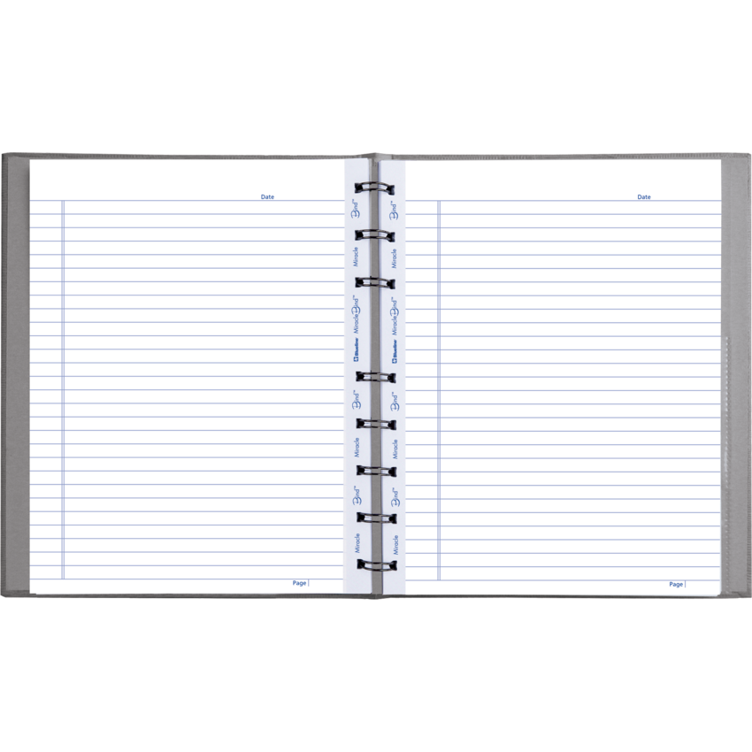 Contains a minimum of 50% post-consumer recycled material. FSC® Certified. Twin wire bound. Hard, lizard-like cover. Ruled pages with margin. Features removable micro-perforated pages, self-adhesive tabs and index sheet. 150 pages. 9-1/4" x 7-1/4". Includes bonus MiracleBind™ quad pages and storage pocket. Cool Grey.