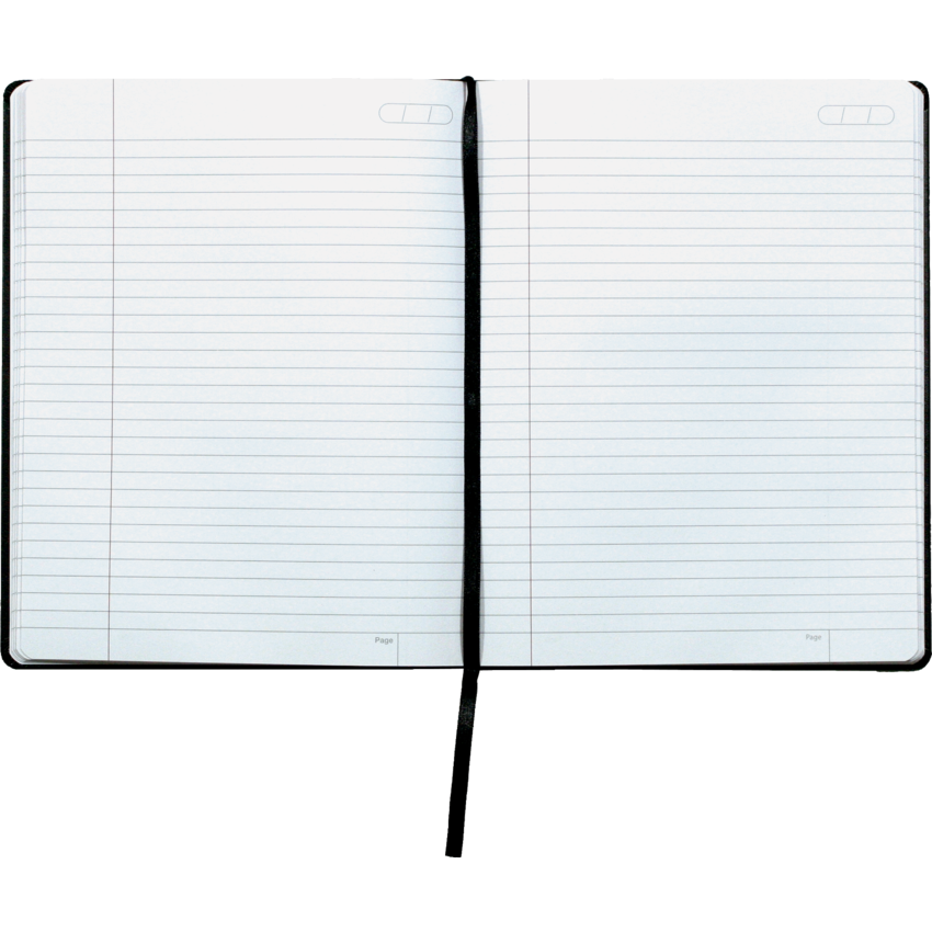 Colour coding tab accent on spine and front cover Contains a minimum of 30% post-consumer recycled material. Hard cover. Sewn bound. Ruled with margin. Features an index page with adaptable tabs, a date box and ribbon marker. 160 pages. 9-1/2" x 7-1/4". Black with Blue tab.