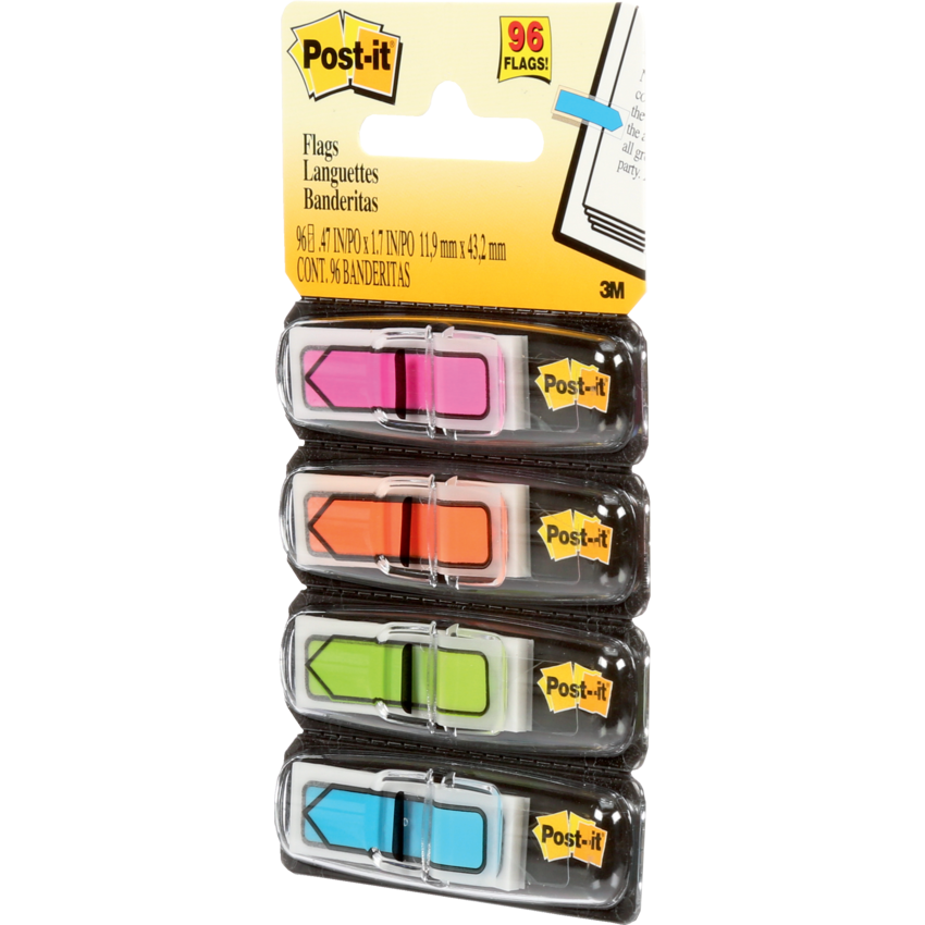 Package Contents: Includes 24 flags/dispenser, 4 dispensers/pack; 96 total flags