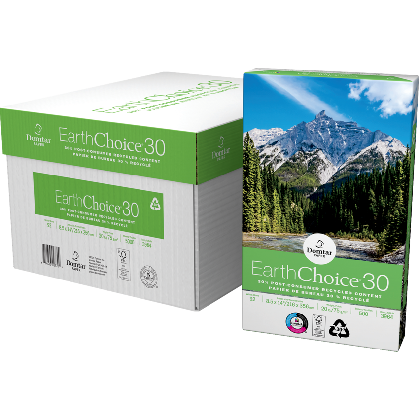 Features ColorLok® Technology for bolder blacks and vivid colours with inkjet printing and better quality performance with laser printing. Contains a minimum of 30% post-consumer recycled content. FSC® Certified. 92 Bright. 88% Opaque. Smoothness: 160. 20 lb. 4.0 mil. 8-1/2" x 14". White. 500 sheets/pkg.