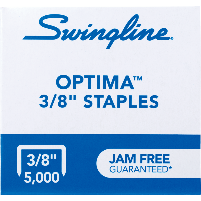 Automatic, high-capacity stapler engineered for quality and performance. Features Solenoid technology for 3X fast stapling, QuickLoad™ for easy, push button staple loading. Low staple indicator. Suction cup mounting on base for stable operation. Engineered for Jam-Free use. Full strip. 2-25 sheets with standard staples/25-50 sheets with Optima® high-capacity staples. Uses AC adapter (included) or 4 "AA" batteries (not included). Black. Includes 5,000 Optima® high-capacity staples and a staple remover. Limited 7-year warranty.