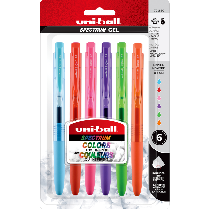 Sleek modern sophisticated design. Innovative tip is rounded and edgeless to reduce friction against the paper, resulting in a super-smooth writing experince. Uni super ink protects against water, fading and fraud Rubberized grip. 0.7 mm. Assorted Fashion Colours. 6/pkg.