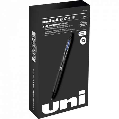 Uni Super ink Plus with nano fibre ink is the world's first consumer application of a plant fibre, molecule-based super strong ink. This environmentally friendly ink, is derived from trees, rice, straw, and orange peels Textured grip. 0.7 mm. Blue. 12/box.