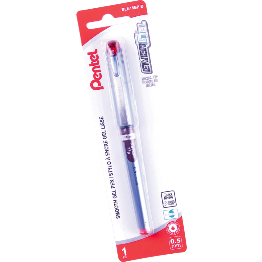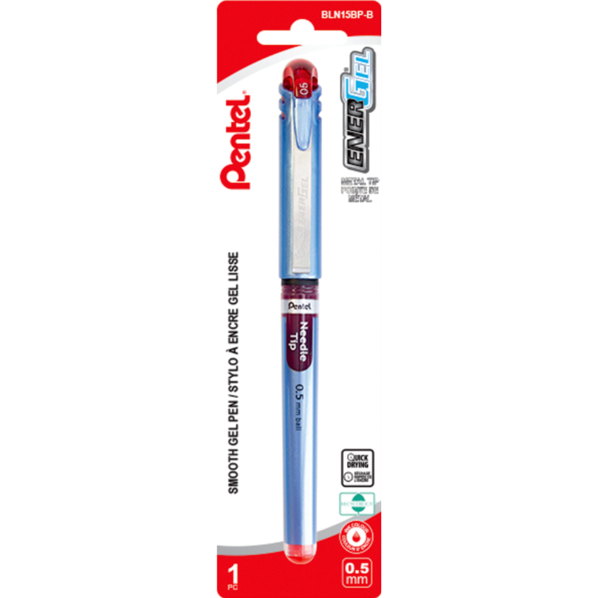 The best qualities of liquid ink and gel ink are blended into a super-smooth formula and delivered via an exclusive ink/tip technology Sleek and stylish barrel design with metal accents for a professional look. Maximum comfort and control with the rubber grip. Contains a minimum of 52% recycled material. Refillable. 0.5 mm. Red.