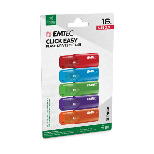 Emtec Click Easy Flash Drive USB Drive 16GB 5/pkg