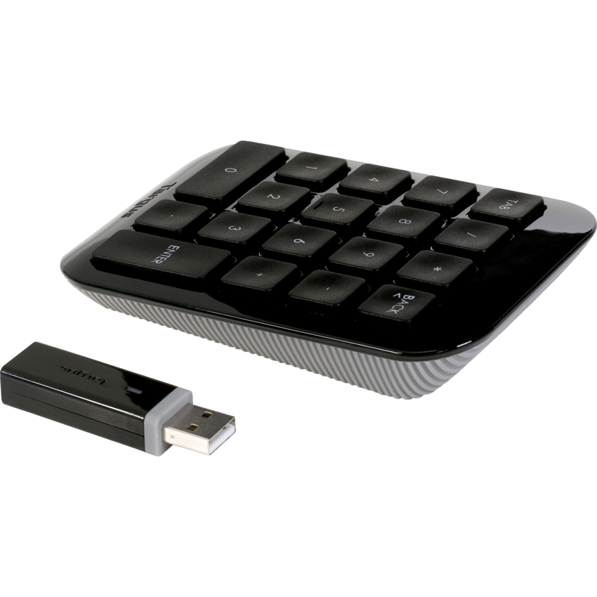 Full sized, comfortable keys for increased accuracy. Great for those working on spreadsheets, accounting files or financial applications. Wireless technology provides a cordless workspace and allows the keypad to function up to 33 ft from the receiver. Ergonomic tilt provides support to help prevent wrist strain. Battery indicator light lets users know when batteries are running low. Uses 1 "AAA" battery (included). 1-year limited warranty. Black.